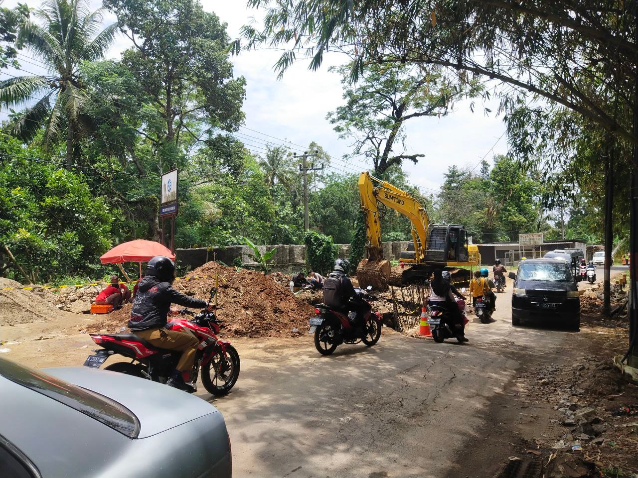 Proyek Perbaikan Gorong-gorong Bikin Kendaraan di Jalan Raya Pandeglang – Serang ‘Menumpuk’