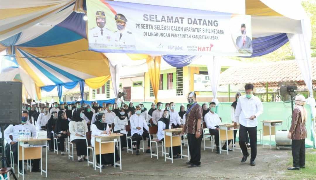 LEBAK, BINGAR.ID – Tes Seleksi Kompetensi Bidang (SKB) Penerimaan Calon Pegawai Negeri Sipil (CPNS) Formasi Tahun 2019 di lingkungan Pemerintahan Kabupaten Lebak kembali diselenggarakan di Latansa Mashiro Rangkasbitung, Rabu (7/10/2020).