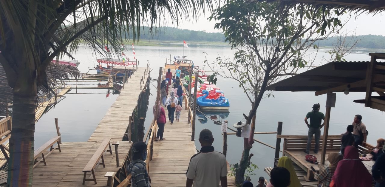 “Kita bisa naik perahu bersama keluarga dan juga rakit ada juga bebek-bebekan. Setelah itu nanti kita makannya juga disini tinggal pesan saja, ada nasi liwet dengan menu ikan ada ikan emas ikan nila dan ikan gurame,” kata salah seorang pengunjung, Reki, Minggu (28/6/2020)