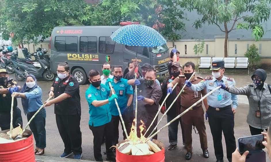 Pemusnahan barang bukti disaksikan oleh Walikota Cilegon, Edi Ariadi hingga Kepala Lapas Klas IIA Cilegon, Musjono, di Kantor BNN Kota Cilegon, Rabu (15/7/2020).
