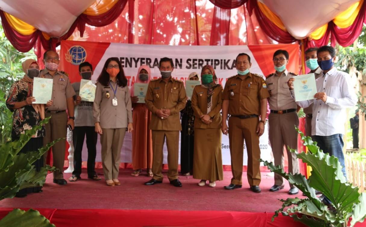 Penyerahan sertifikat PTSL itu yang pertama yang dilakukan BPN di Provinsi Banten pada tahun 2020. Penyerahan sertifikat tersebut dihadiri langsung oleh Kepala Kanwil BPN Banten, Tenri Abeng, Kepala BPN Serang, Teguh Weiyana, dan Walikota Serang, Syafrudin.