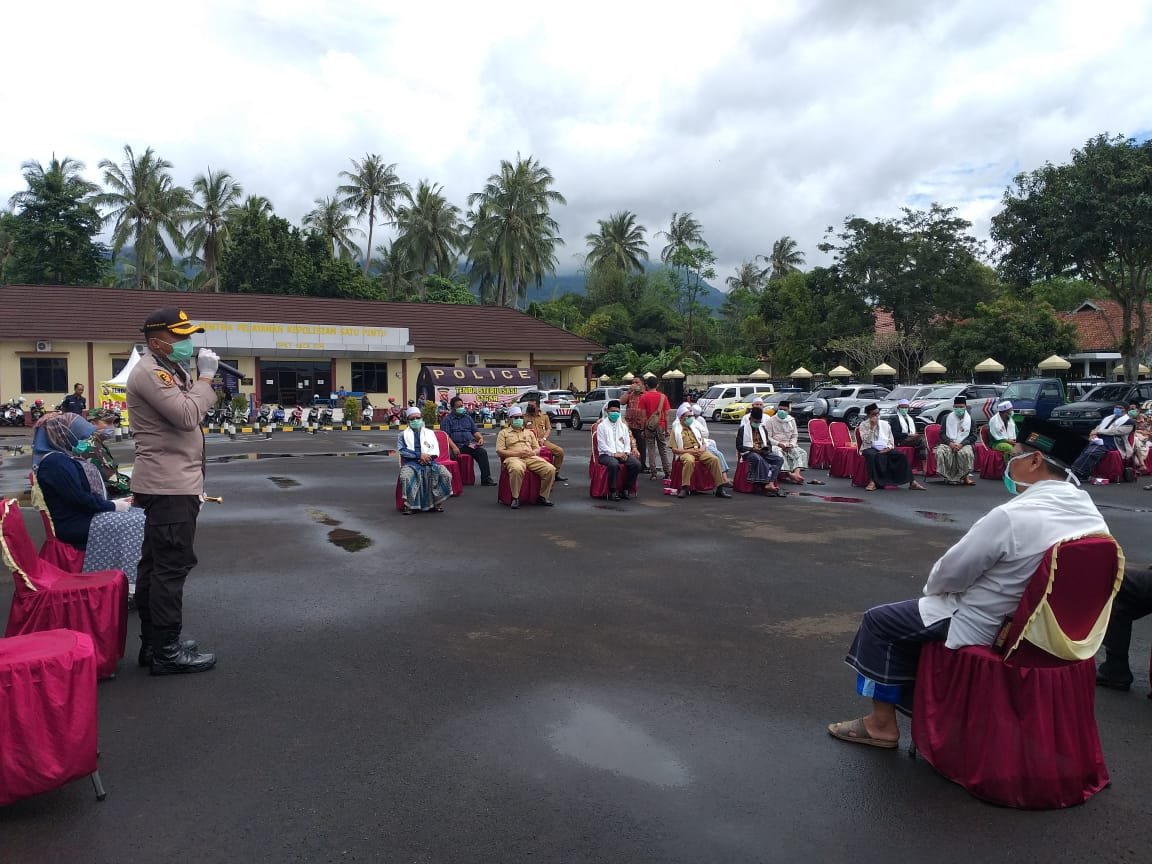 “Pada intinya yang disampaikan Kapolres itu sangat baik sekali, karena memang dalam melawan wabah ini kita semua harus menerapkan pola hidup sehat baik itu kebersihan diri, kebersihan lingkungan, tingkatkan keimanan, keamanan dan keimunan,” katanya.