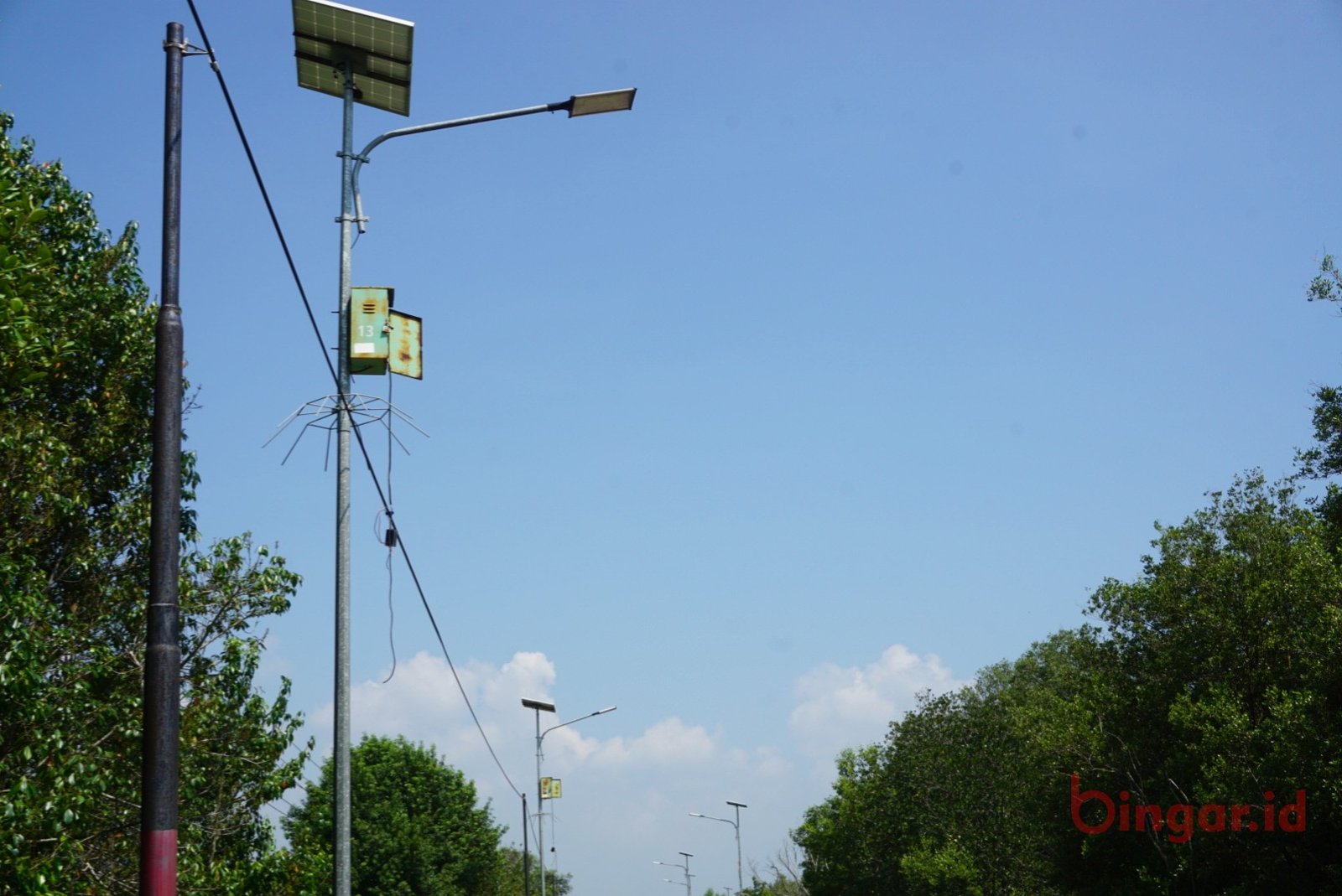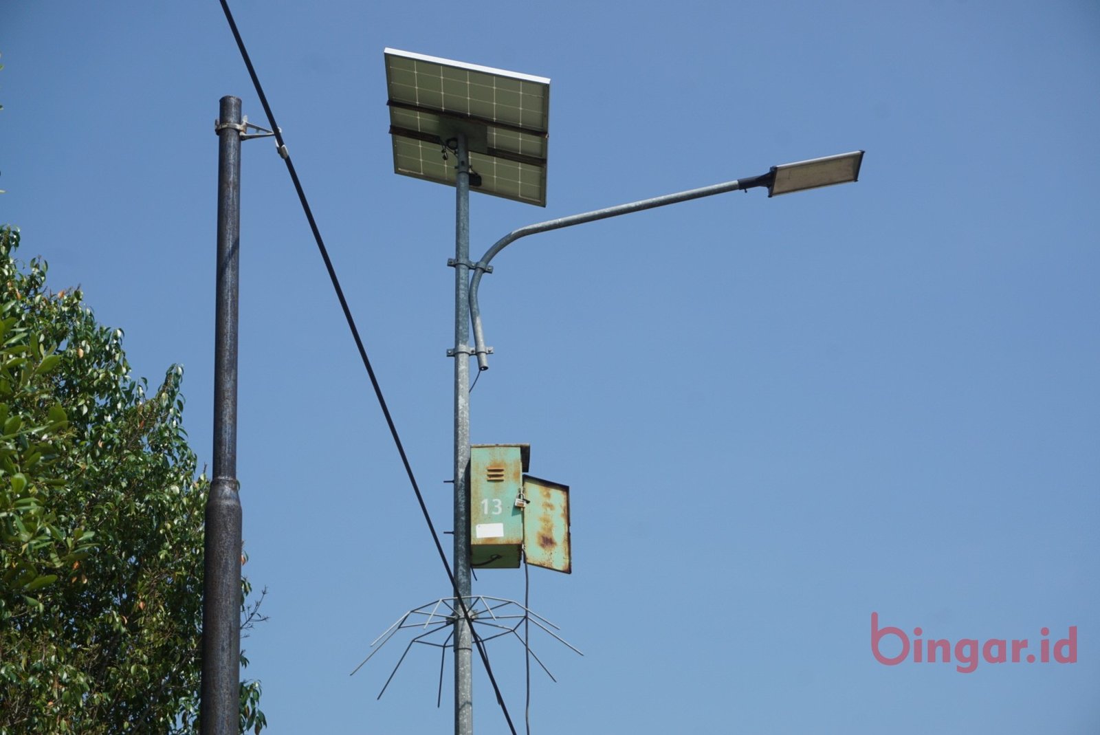 Dari pantauan, PJU ini sudah lama dibiarkan rusak. Padahal, penerangan yang dihasilkan dari PJU cukup membantu pengguna jalan saat malam hari. (Foto. Fauzan/Bingar)