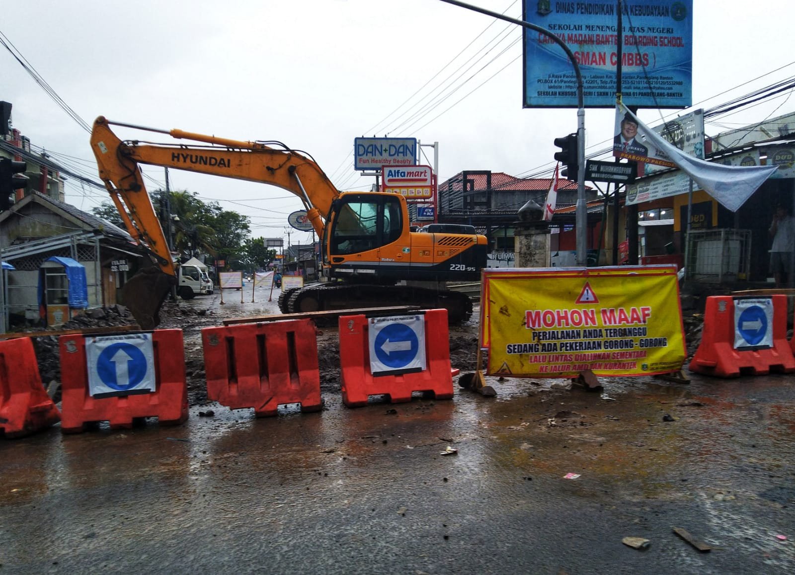 PANDEGLANG, BINGAR.ID – Gorong-gorong saluran air yang berada di perempatan Pasar Maja, Kecamatan Majasari, Kabupaten Pandeglang, dibongkar sejak Sabtu 11 Februari 2023 malam. Akibat adanya aktifitas proyek tersebut, arus lalu lintas dari arah Labuan ke Pandeglang, maupun sebaliknya dialihkan ke Jalan Raya Lintas Timur (AMD).