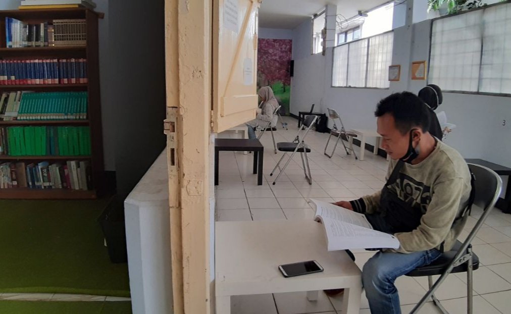 “Jadi kita bagi dua sesi. Per satu sesi nya pembaca maksimal tidak boleh lebih dari sepuluh orang jadi bergantian. Dan jarak tempat duduknya juga kita berjauhan,” ucapnya.