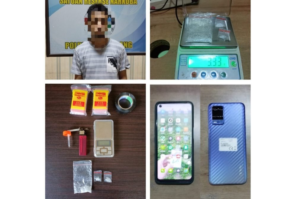 Dikatakannya juga, setelah penangkapan tersangka pihaknya berhasil mendapatkan beberapa barang bukti. Diantaranya satu bungkus plastik klip bening yang berisikan narkotika jenis sabu dan dua bungkus plastik klip bening yang berisikan narkotika jenis sabu yang dibalut dengan menggunakan tissue kemudian di lakban berwarna hitam dengan berat 3.33 gram.