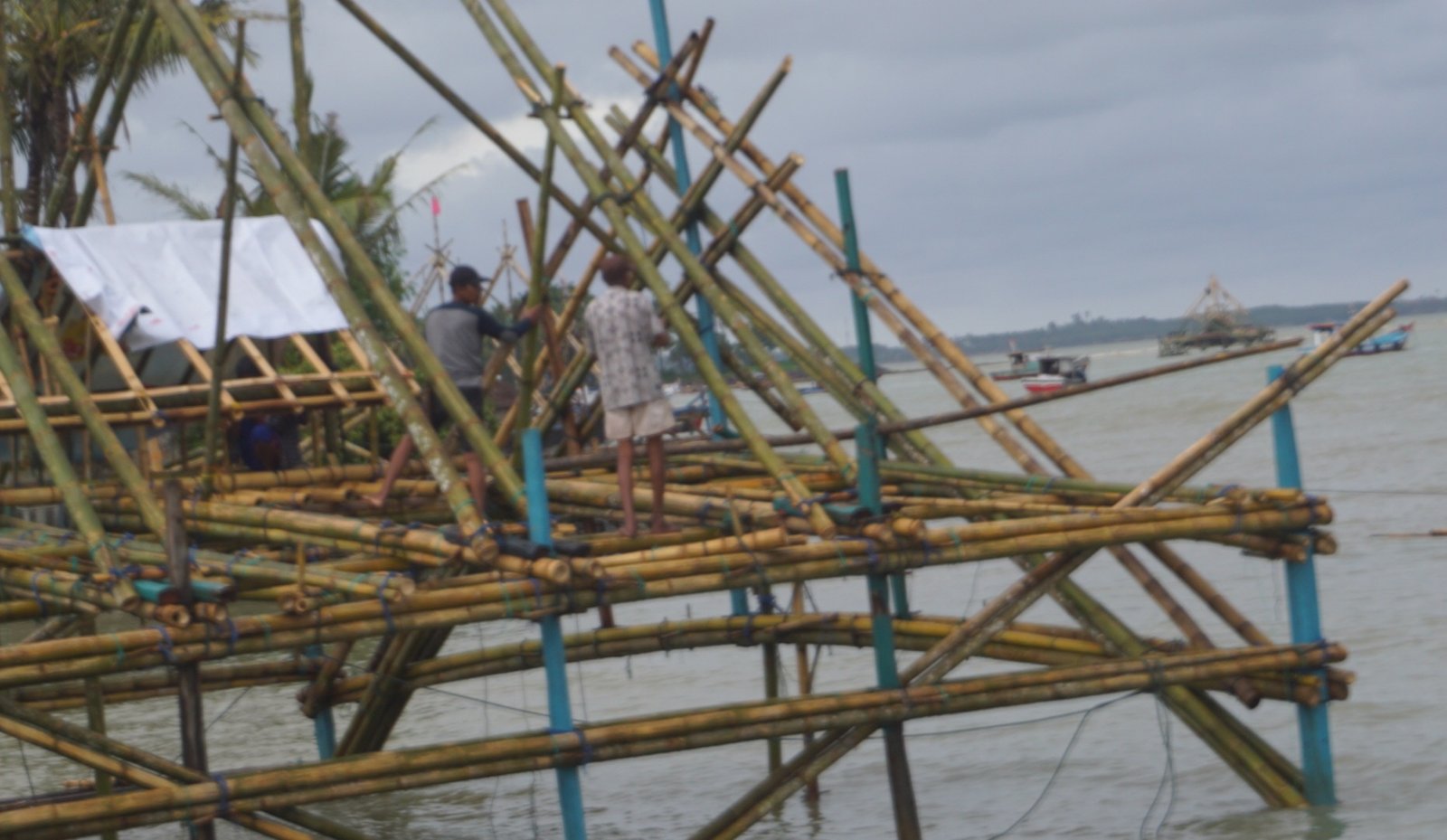 Kini para nelayan pemilik bagan turun ke laut untuk merapihkan bagan. Ada pula, nelayan yang menarik bagan kedaratan menggunakan perahu, terutama bagan apung.