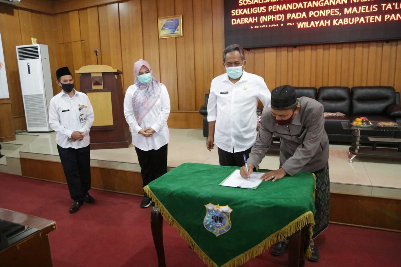 Proses pemberian hibah itu diawali dengan penandatanganan Naskah Perjanjian Hibah Daerah (NPHD) Ponpes, Majlis Taklim, Masjid dan Mushola di Aula Badan Pengelola Keuangan Daerah (BPKD), Rabu (22/7/2020).