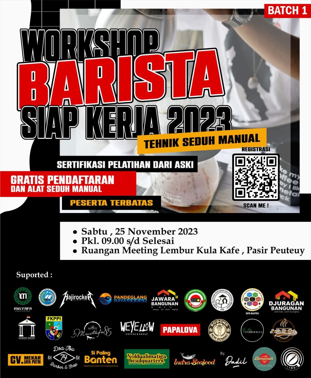 Kegiatan Workshop Barista yang dilaksanakan oleh Balad Mustafa yang bekerjasama dengan Kelompok Kerja Wartawan (Porwan) Pandeglang, dengan menggandeng Asosiasi Kopi Indonesia (ASKI) tersebut, disambut antusias puluhan peserta dan para pecinta kopi.