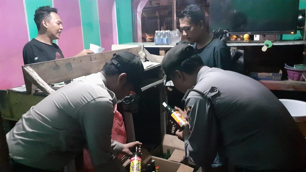 Dari hasil operasi itu diamankan Miras berupa 2 Botol minuman merk rajawali, 1 botol anggur buah, 1 botol Intisari, 1 botol anggur, 7 botol kosong kolesom, 8 botol minuman singa raja dan 3 Botol Kosong minuman Singa raja.