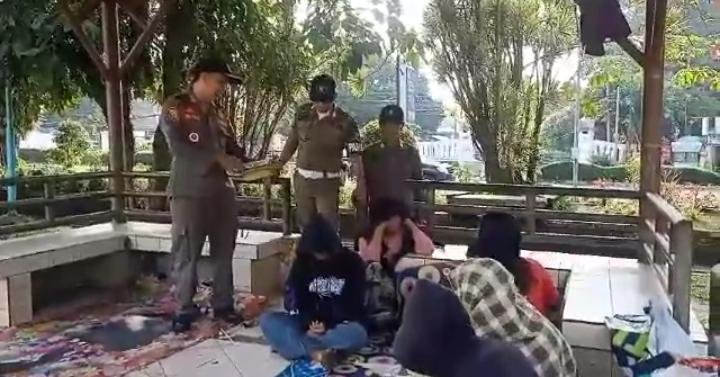 PANDEGLANG, BINGAR.ID – Sejumlah remaja dan pengamen yang sedang beristirahat di salah satu gajebo yang ada di Ruang Terbuka Hijau (RTH) Alun-Alun Pandeglang, diamankan dan ditertibkan oleh Satuan Polisi Pamong Praja (Satpol PP) setempat, pada Kamis 16 Maret 2023.