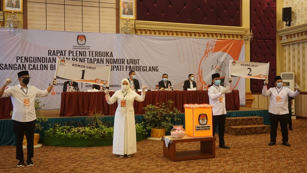 Berdasarkan hasil pengundian dan penetapan nomor urut yang diselenggarakan di Hotel Horison Altama, Kamis (24/9/2020), pasangan Intan mengunci nomor urut 1. Sementara Toat mendapat nomor urut 2.