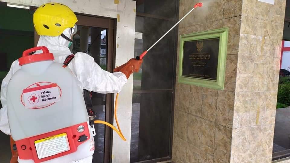 Jelang Kenormalan Baru, PMI Semprot 28 Kecamatan di Pandeglang Dengan Disinfektan