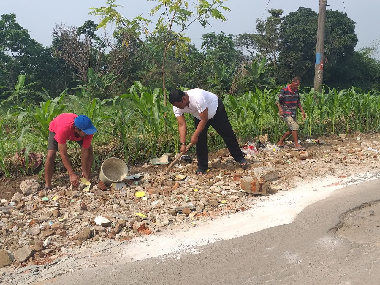 Warga Cadasari Gotong Royong Perbaiki Jalan Secara Swadaya