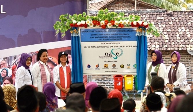 Istri Presiden Jokowi Dodo (Jokowi) itu didampingi oleh istri Wakil Presiden Wury Estu Handayani. Bantuan jamban itu diberikan langsung kepada masyarakat secara simbolis.