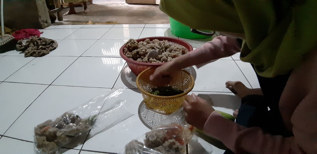 “Kalau sudah dibuat bulat-bulat baksonya, masukan ke air yang sudah dipanaskan, tunggu sampai baksonya terapung di permukaan. Kalau sudah terapung berarti sudah selesai,” tutupnya seraya menutup panci.