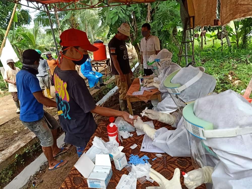 Uji cepat dilakukan menyusul tiga warga Carita yang terkonfirmasi positif Covid-19. Akibatnya kini wilayah pesisir tersebut ditetapkan sebagai zona merah.